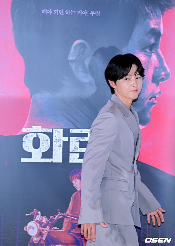 최근 영국 출신 배우인 케이티 루이스 사운더스와 결혼해 득남한 유명 배우 송중기가 22일 오후 삼성도 메가박스 코엑스에서 열린 영화 '화란' 언론시사회에 참석해 노개런티로 출현한 이유를 밝혔습니다.