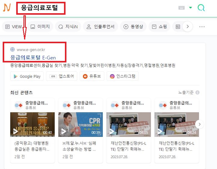 검색창에 '응급의료포털' 혹은 'E-Gen이라고 쓰고 검색하시면 E-Gen 연결링크를 바로 확인하실 수 있습니다.